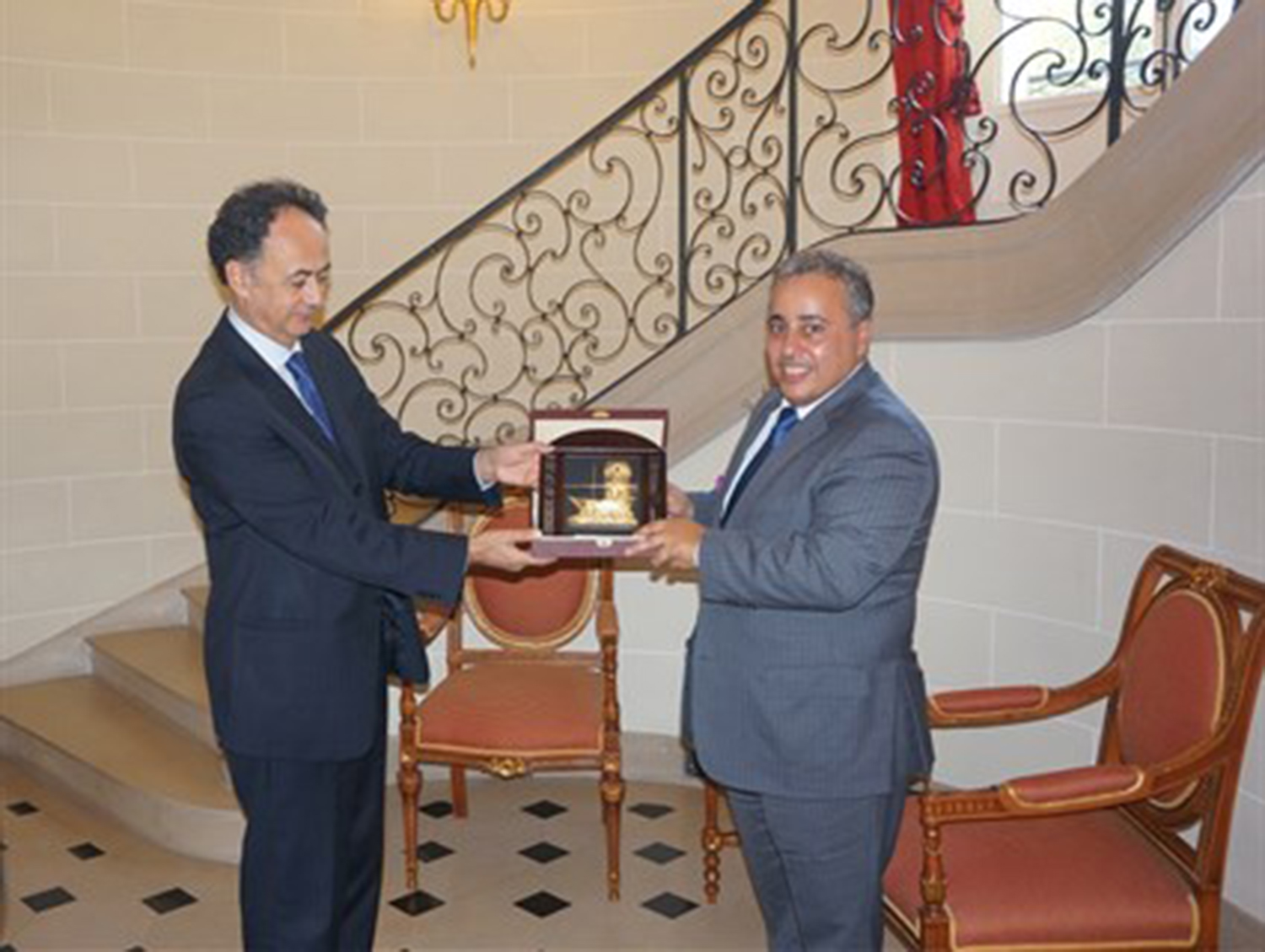 إستقبل سعادة الشيخ / علي بن جاسم آل ثاني سفير دولة قطر لدى مملكة بلجيكا ورئيس بعثة دول قطر لدى الاتحاد الاوروبي بسعادة السيد / Matthias Burchard مدير ممثلية (الأونروا) لدى الاتحاد الاوروبي بمقر السفارة في بروكسل.